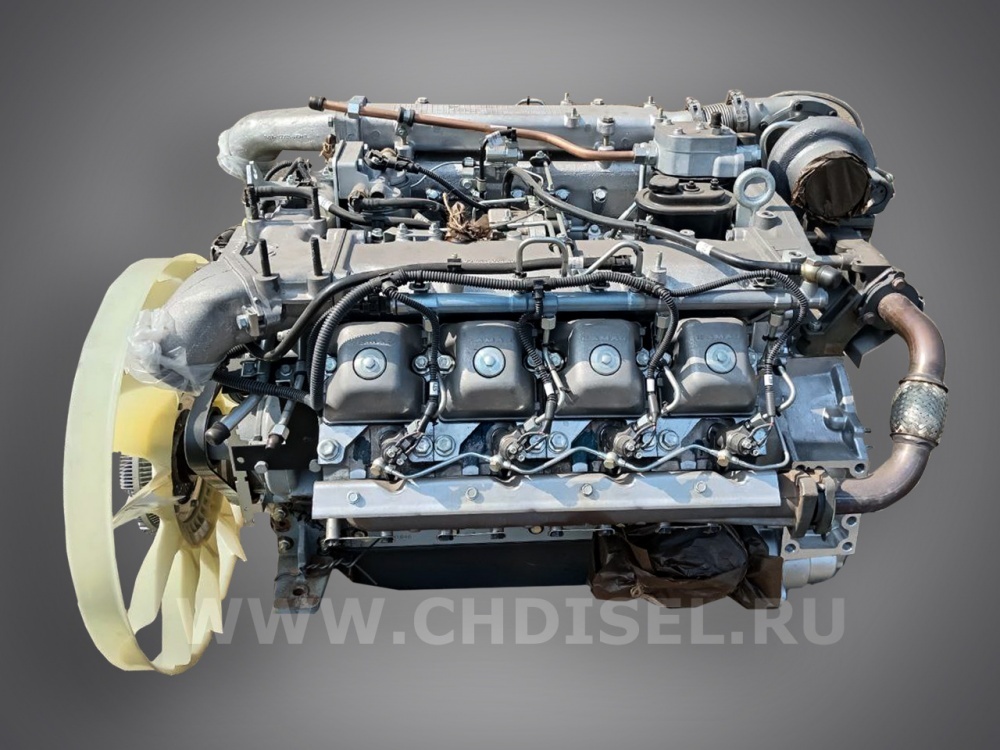 Дизельный восьмицилиндровый двигатель КАМАЗ 740.735-400 мощностью 400 л.с. экологического стандарта Евро-5, с индивидуальными алюминиевыми головками, турбонаддувом, ОНВ, электронным управлением и системами топливоподачи типа «Common Rail», обработки отработавших газов и бортовой диагностики.